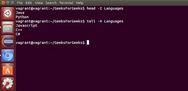 - huvud : Används för att skriva ut de första N raderna i en fil. Den accepterar N som indata och standardvärdet för N är 10.