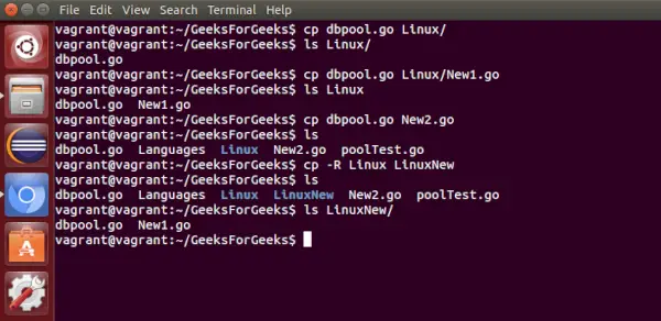 - cp : Det här kommandot kopierar filerna och katalogerna från källsökvägen till målsökvägen. Den kan kopiera en fil/katalog med det nya namnet till destinationssökvägen. Den accepterar källfilen/katalogen och målfilen/katalogen.