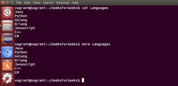 - mindre : Den används för att visa filerna istället för att öppna filen. Liknande Mer kommando men det tillåter rörelse bakåt såväl som framåt.