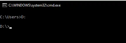 3. Ett ytterligare sätt att ändra CWD till en annan enhet utan att använda cd-kommandot är att köra enhetsbokstaven följt av ett kolon.