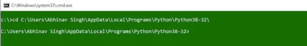 Steg 2: Ändra den aktuella sökvägen till katalogen på kommandoraden till sökvägen till den katalog där filen ovan finns.