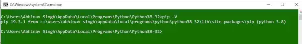 Man kan enkelt verifiera om pip har installerats korrekt genom att utföra en versionskontroll på densamma. Gå bara till kommandoraden och kör följande kommando: