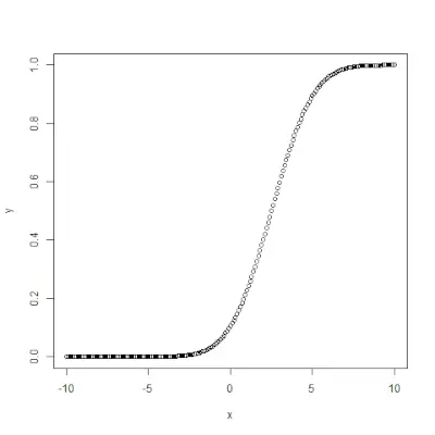 # creating a sequence of values> # between -10 to 10 with a difference of 0.1> x <>-> seq(>->10>,>10>, by>=>0.1>)> > y <>-> pnorm(x, mean>=> 2.5>, sd>=> 2>)> > # output to be present as PNG file> png(>file>=>'pnormExample.webp'>)> > # Plot the graph.> plot(x, y)> > # saving the file> dev.off()> |
