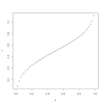 # Create a sequence of probability values> # incrementing by 0.02.> x <>-> seq(>0>,>1>, by>=> 0.02>)> > y <>-> qnorm(x, mean(x), sd(x))> > # output to be present as PNG file> png(>file> => 'qnormExample.webp'>)> > # Plot the graph.> plot(x, y)> > # Save the file.> dev.off()> |