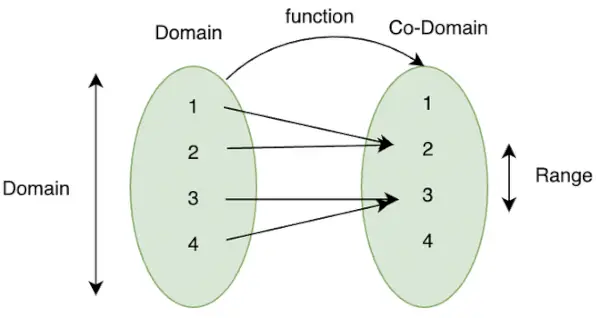 Elementen i uppsättningsdomänen kallas förbilder, och element i uppsättningens Co-Domain som mappas till förbilder kallas bilder. Omfånget för en funktion är en uppsättning av alla bilder av element i domänen. I det här exemplet är intervallet för funktionen {2,3}.