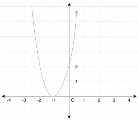 Så, spetsen är vid (-1,0). Eftersom parabeln öppnar sig uppåt måste detta vara minimivärdet för funktionen.