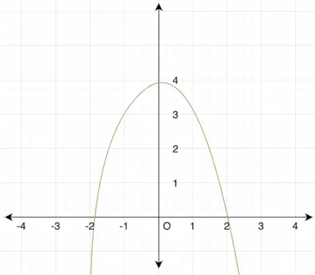 Fråga: Rita grafen och hitta domän och område för den givna funktionen, f(x) = -x 2 + 4.